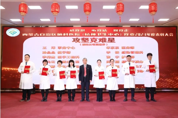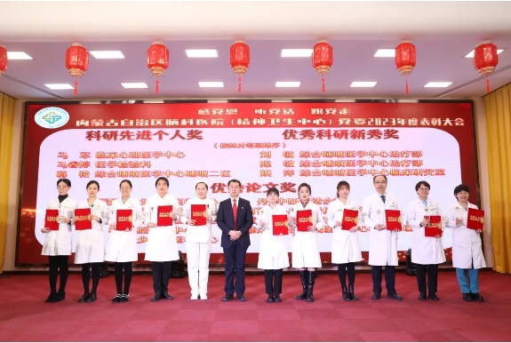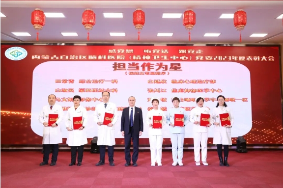 陈丽霞书记指出,2023年在自治区卫健委党组的坚强领导下,牌九游戏 新任党委班子认真贯彻落实党的二十大精神,深入开展学习贯彻习近平新时代中国特色社会主义思想主题教育、“感党恩、听党话、跟党走”群众教育实践活动,充分发挥把方向、管大局、作决策、促改革、保落实的领导作用,把支部建在科室上,树立重效率、重实干、重实绩的正确导向,抓实作风建设,着力解决牌九游戏 存在的“三多三少三慢”和“慢、粗、虚”问题,以“六个跑起来”为抓手推动全院全面提标提速提效。乘着京蒙协作“医疗倍增”计划的东风,脑科牌九游戏 标志性项目在牌九游戏 落地生根,“高水平脑科牌九游戏 +区域精神卫生医疗中心”战略布局从“规划图”落地为“施工图”。“以患者为中心”狠抓医疗质量安全,持续改善医疗服务,大力开展医德医风专项行动,人民群众就医体验和获得感不断增强。开展为期3年的专科建设,亚专科差异化发展,学科能力、水平和竞争力明显提升。启动运营管理改革项目,打造自治区运营管理标杆。优化科研体系,国家精神心理疾病临床研究中心分中心正式挂牌,提升全区精神卫生服务能力,贯彻落实《内蒙古自治区精神卫生条例》,积极探索“党建+心理健康”新模式,搭建起全区社会心理服务体系网络上的党建联盟,凝心聚力做好“两件大事”。坚持为党育人,厚植成才沃土,牌九游戏 获批内蒙古医科大学第三批虚拟教研室、“一站一经典”心理健康教育重点项目。实施人才培养战略,大力推动干部队伍建设。