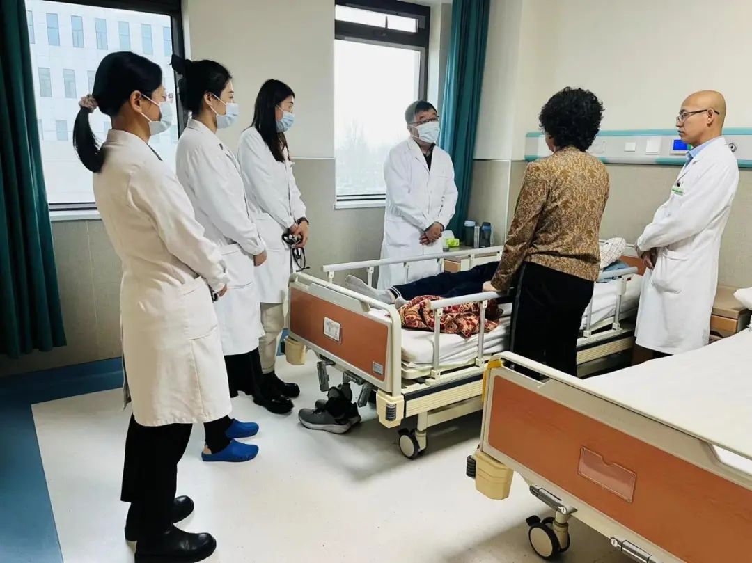 查体结束后,王群主任整体评估了患者病情,结合既往史,指出该患者在此次脑出血有其病前危险因素,根据影像学资料考虑患者之前存在脑小血管病变,追问病史可以发现有血管性痴呆的早期症状。同时预判患者目前肢体功能障碍由于病变位置相对差及侧支循环代偿功能差,可能恢复较慢。最后,王群主任认真指导给出了下一步的治疗方案并细心叮嘱注意事项。