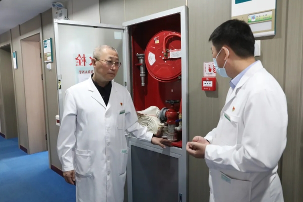 4月17日上午,于东升院长带队,院办、医务部、保卫科、事务中心、物业公司负责人陪同,对察布路院区开展安全生产行政查房,全面排查各类安全隐患。