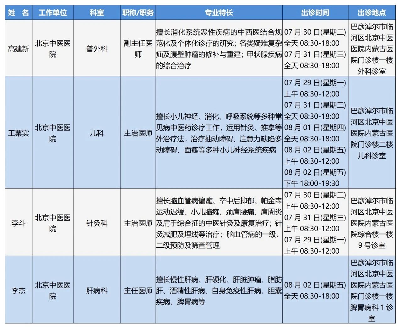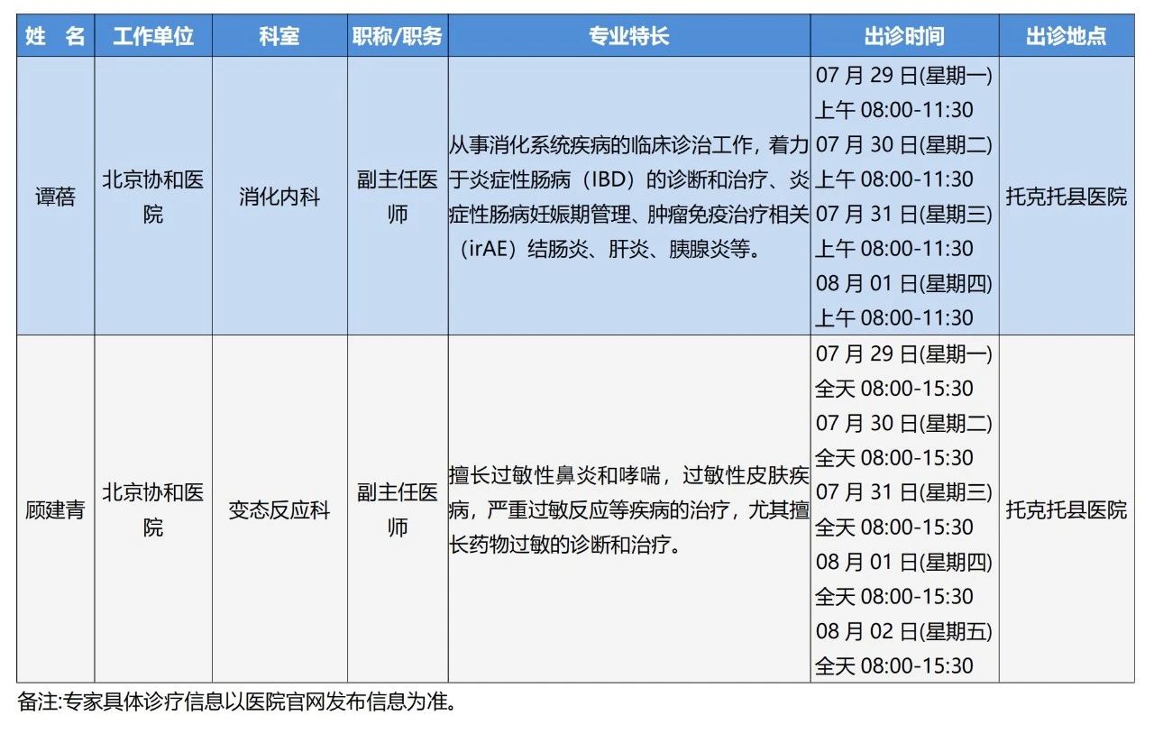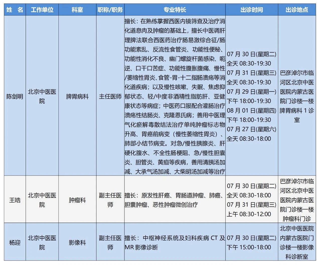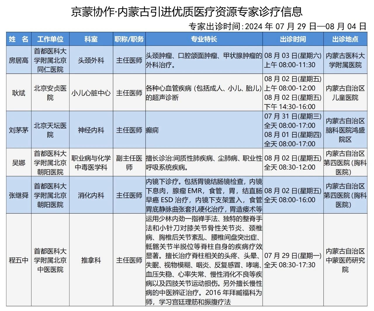 “京蒙协作”|本周北京协作牌九游戏 专家出诊安排