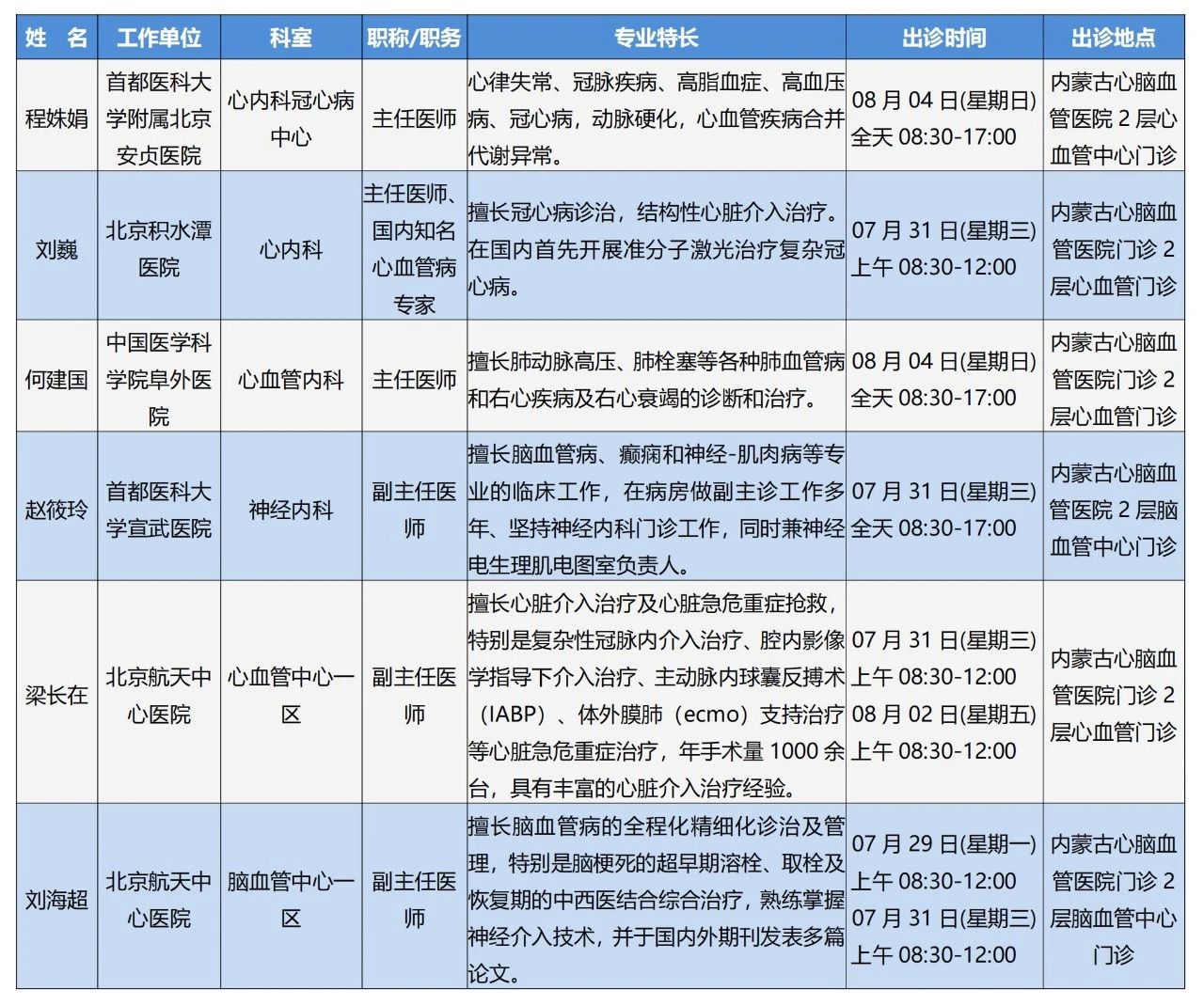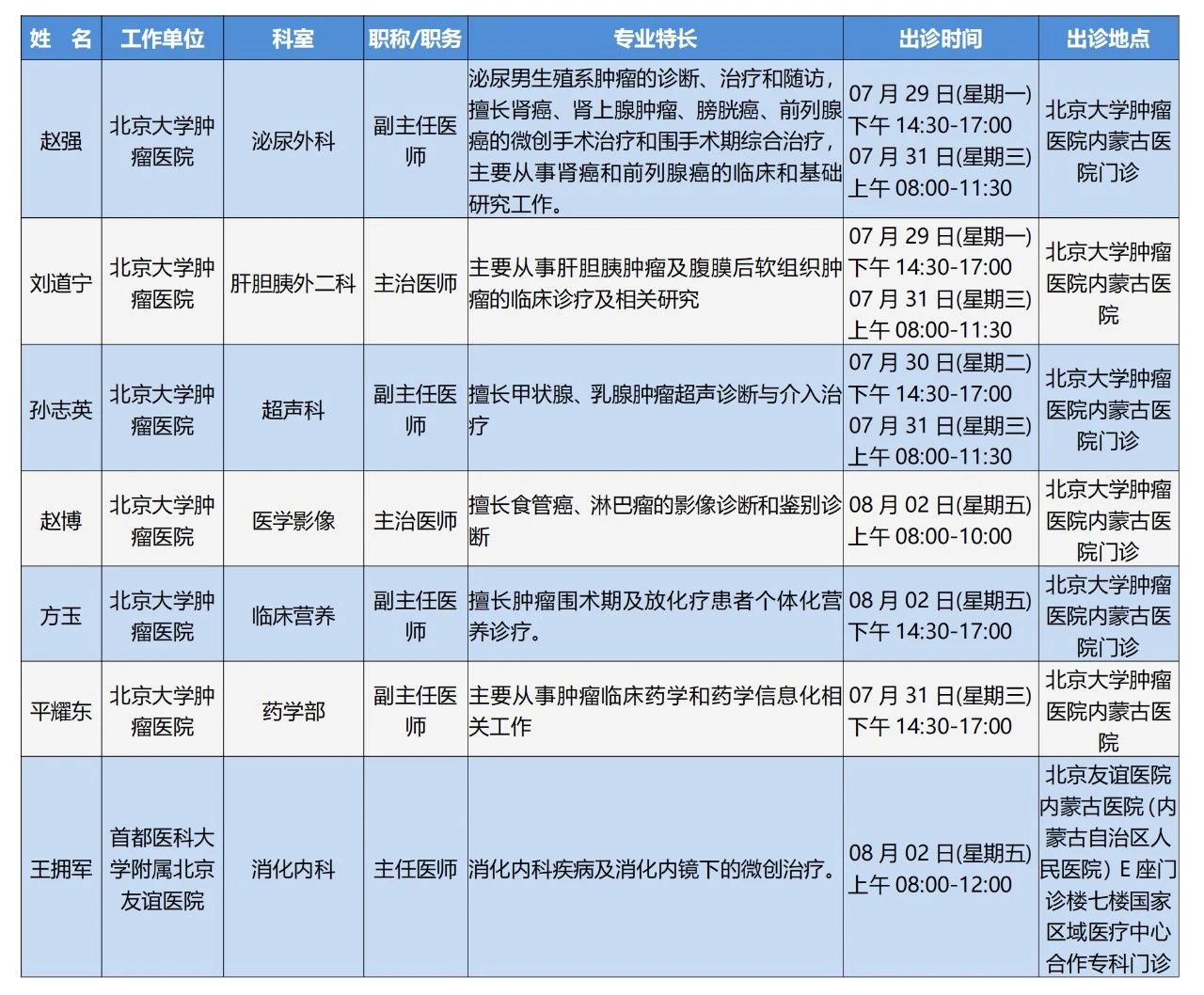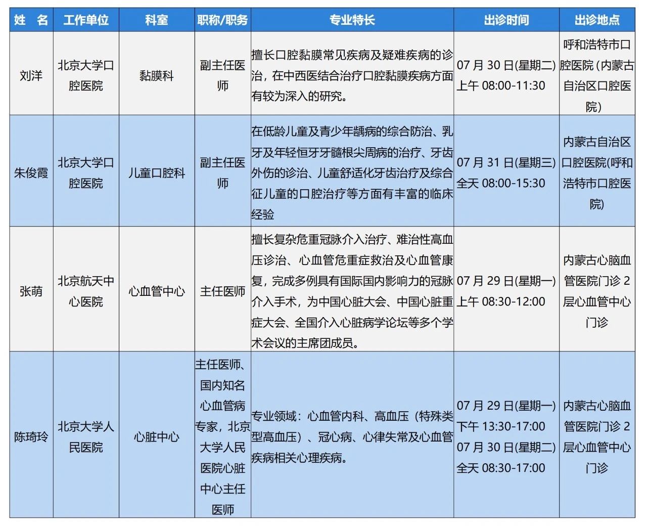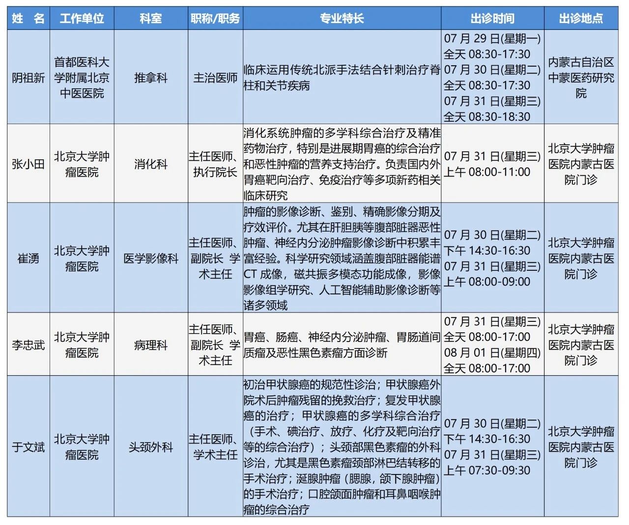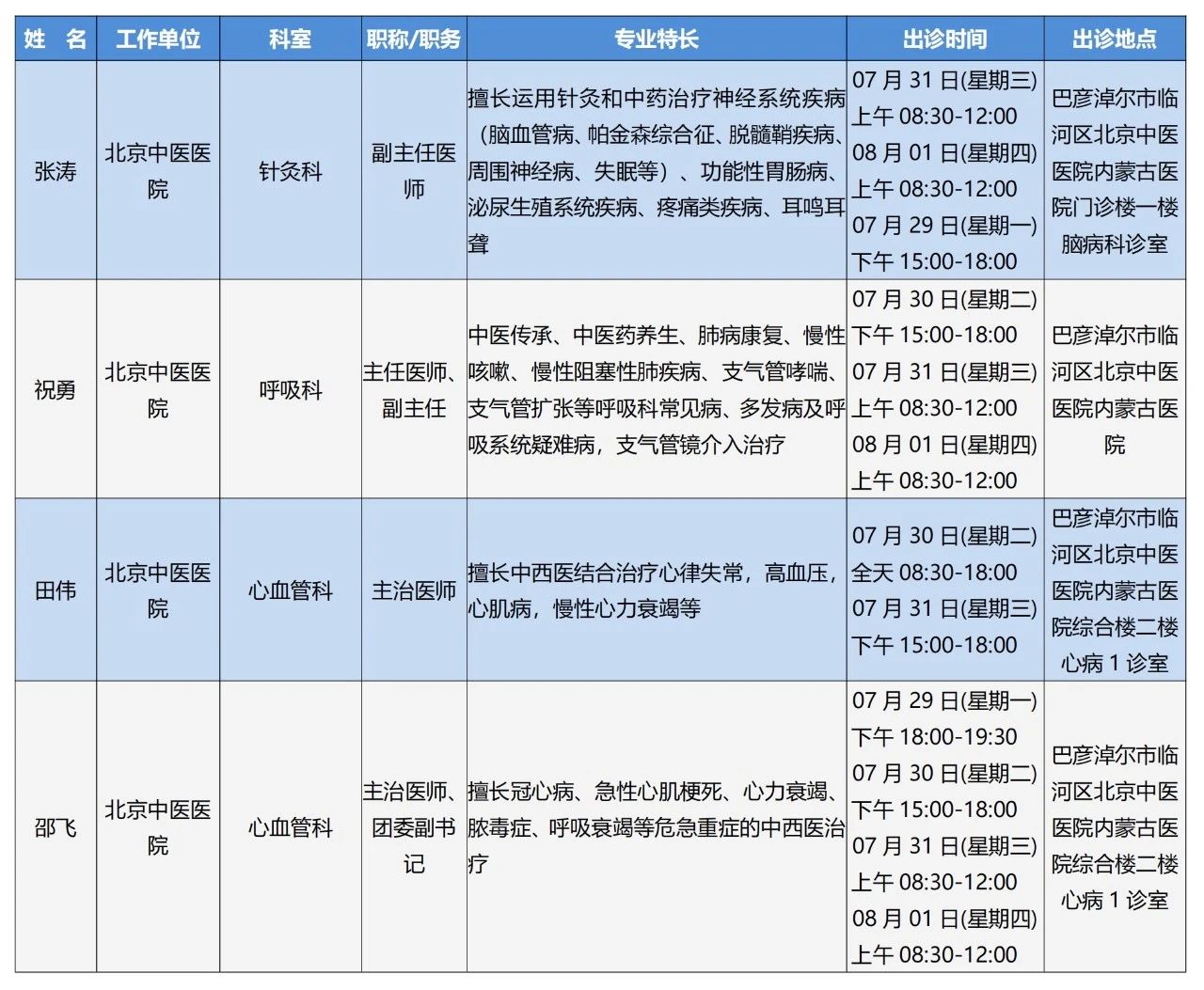 “京蒙协作”|本周北京协作牌九游戏 专家出诊安排