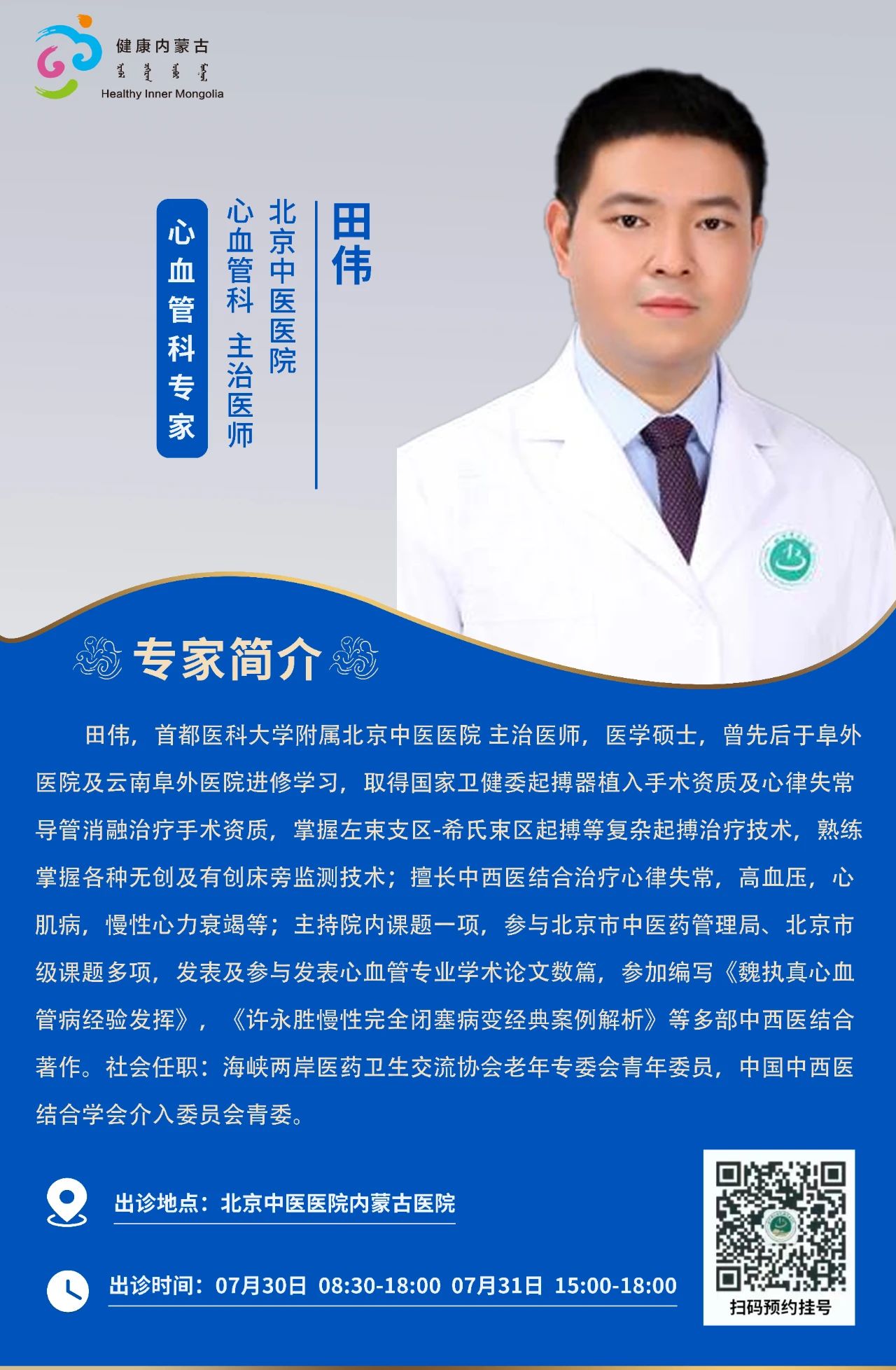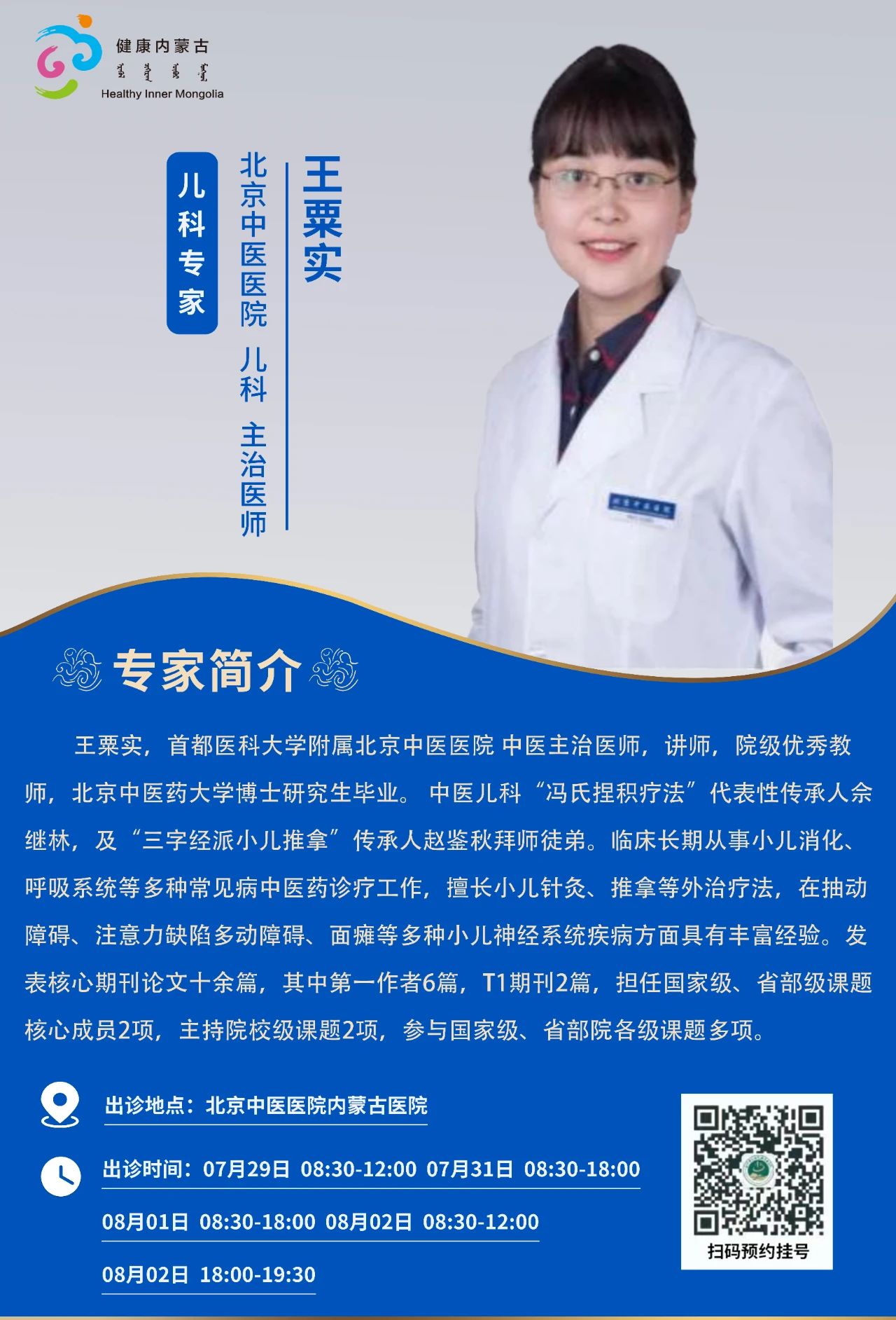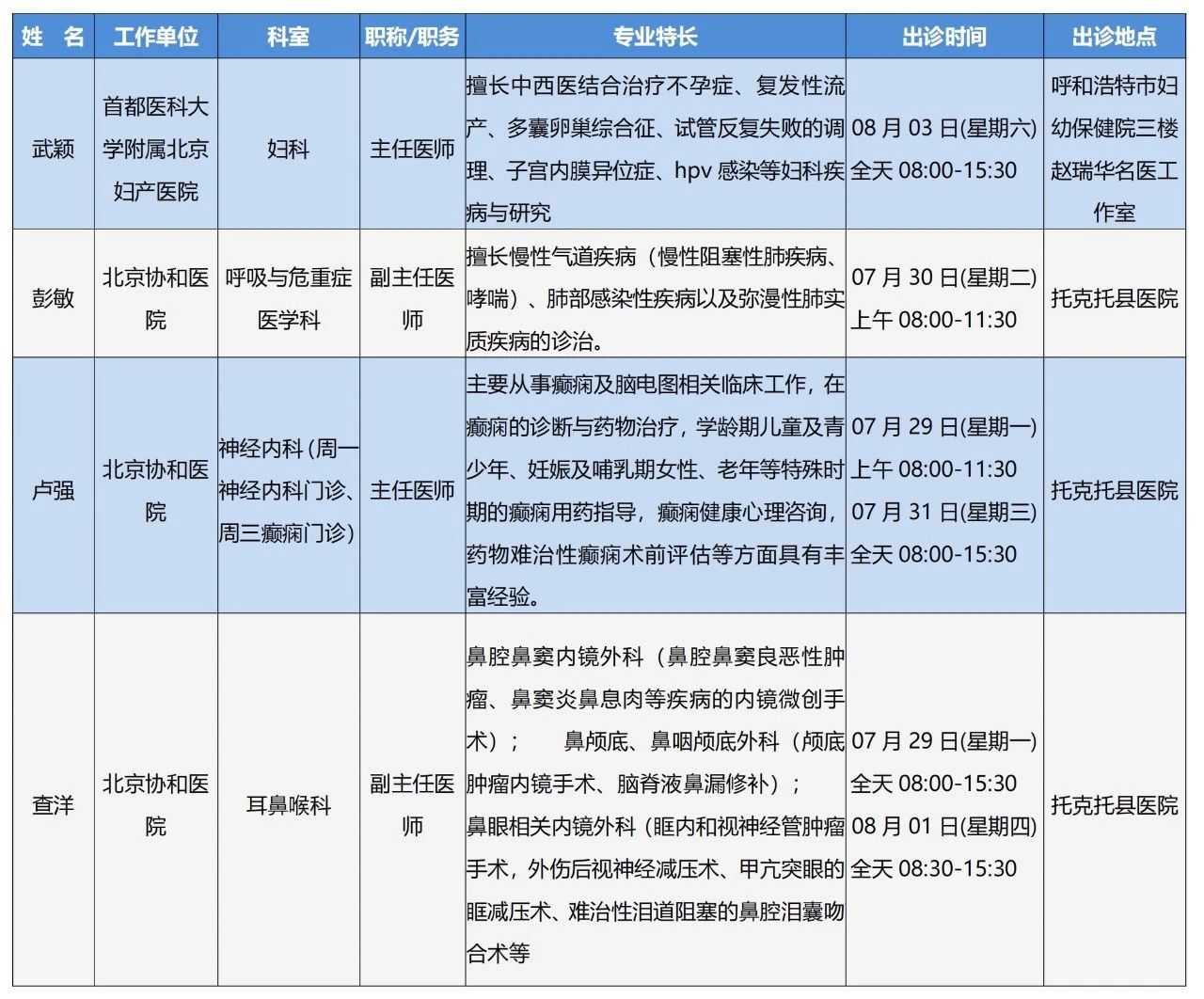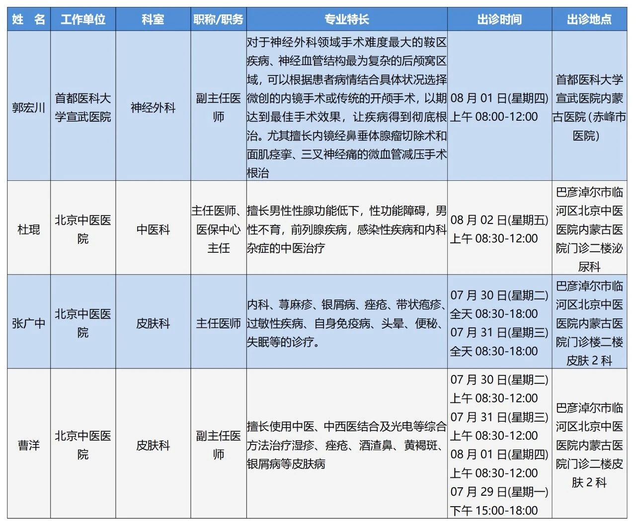 “京蒙协作”|本周北京协作牌九游戏 专家出诊安排