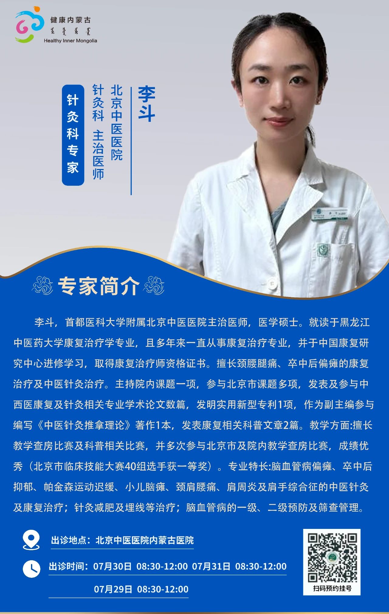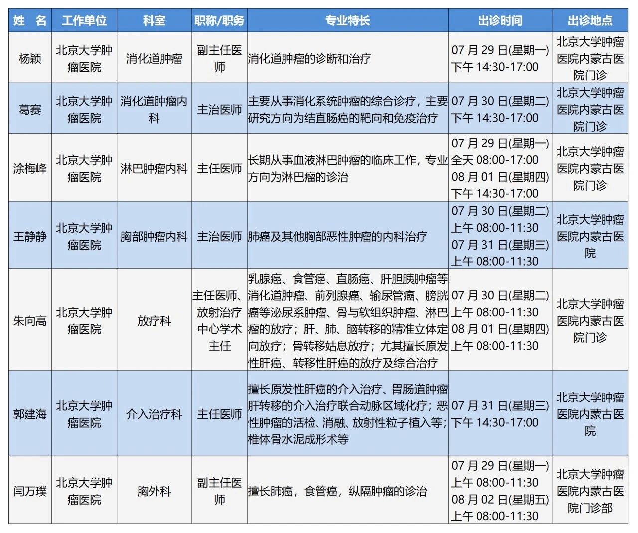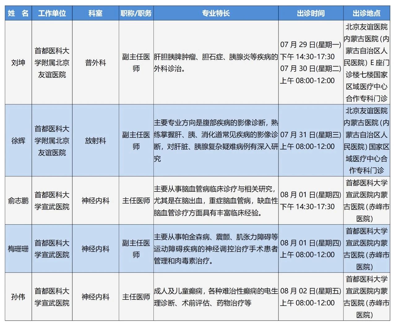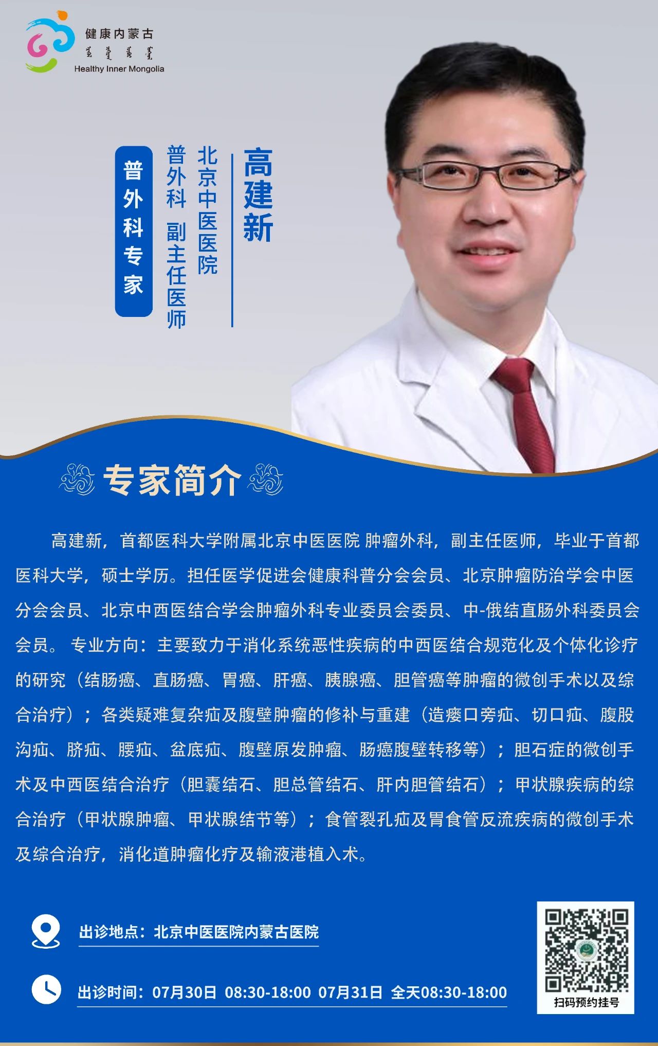 “京蒙协作”|本周北京协作牌九游戏 专家出诊安排