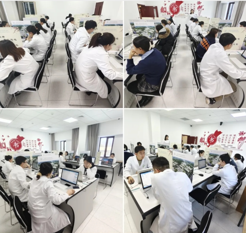 1月3日下午,34名研究生在鸿盛院区教学楼2楼电教室使用医视界考试系统完成理论考试。1月8日和1月9日上午,34名研究生在OSCE考站完成了实践操作考核。本次年度考核采取多站式方式,包括心肺复苏;9项基本技能操作(随机抽取1项),考生在考室内抽题后应用相应模具在10分钟内完成考试内容;以及精神科实践技能考核,本次考核参照精神科培训标准,考核内容包括精神检查、病史采集、人际沟通、病例分析等。