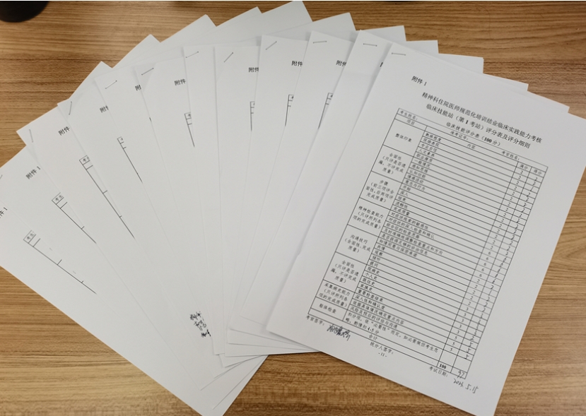 采用现场精神科问诊,汇报病例模拟临床实践能力考核过程,带教老师进行现场同质化评分
