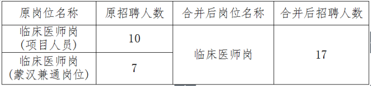 “项目人员”岗位和“蒙汉兼通”人员岗位的报名交费工作已结束,无符合招聘条件的人员通过,现将“项目人员”岗位和“蒙汉兼通”人员岗位转为“普通岗位”再次进行报名,具体岗位要求的学历、专业、其他条件均不变,招聘指数合并为普通岗位指数。具体如下: