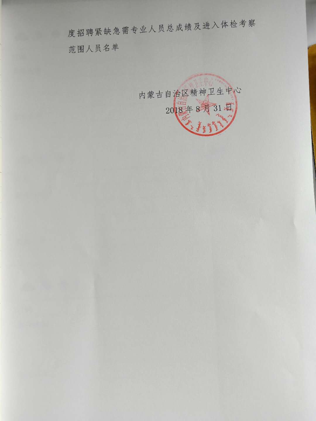 牌九玩法研究所 (精神卫生中心)2018年度公开招聘工作人员总成绩及进入体检考察范围人员名单、牌九玩法研究所 (精神卫生中心)2018年度招聘紧缺急需专业人员总成绩及进入体检考察范围人员名单