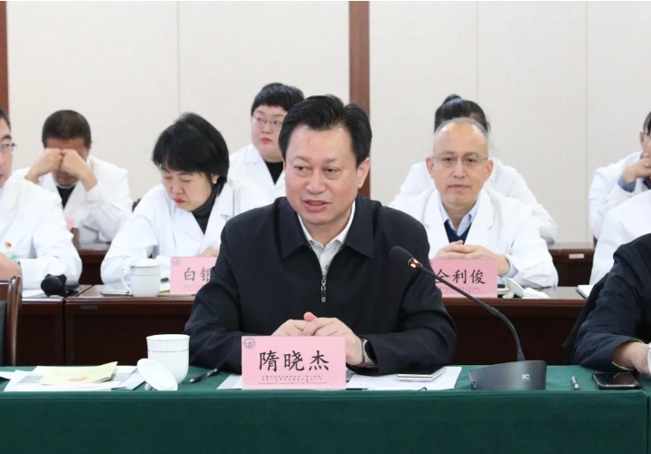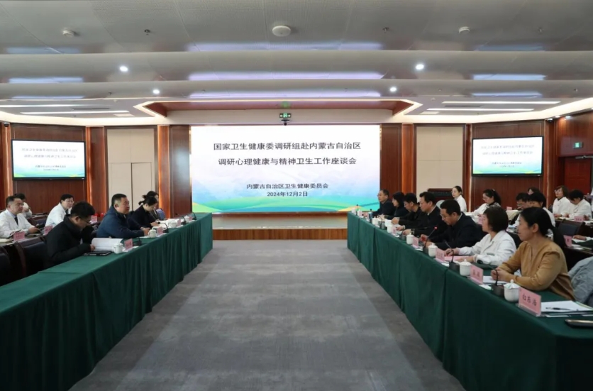 (鸿盛院址)门诊楼四楼会议室对内蒙古自治区心理健康和精神卫生工作进行调研,内蒙古自治区卫生健康委副主任隋晓杰、内蒙古自治区卫生健康委医政处处长阿斯楞、内蒙古自治区卫生健康委医政处卫生监察专员张颖等陪同。内蒙古自治区卫生健康委医政处处长阿斯楞主持会议。