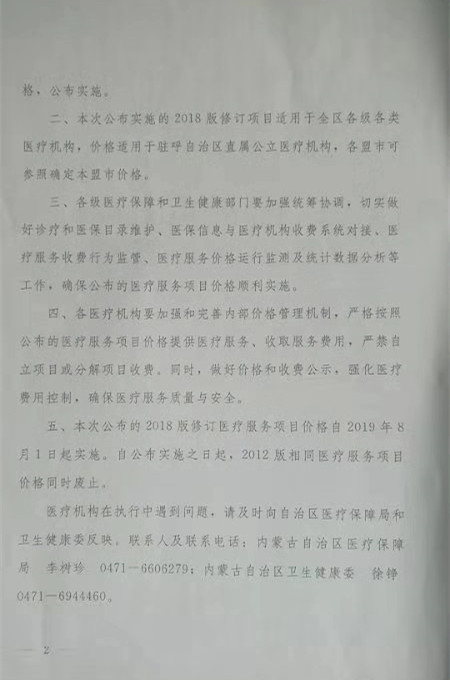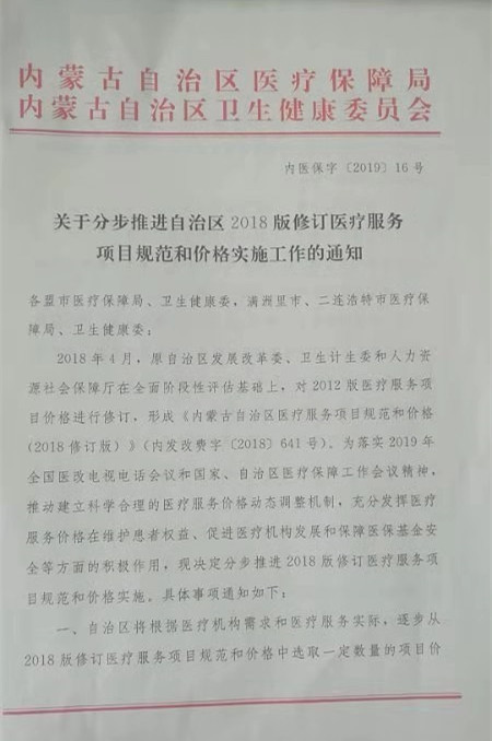 根据内蒙古自治区医疗保障局和卫生健康委员会《关于分步推进自治区2018版修订医疗服务项目规范和价格实施工作的通知》(内医保字〔2019〕16号)精神,牌九玩法研究所 参照执行2018版第一批修订项目和价格有三项新增项目:精神病人护理Ⅰ、Ⅱ、Ⅲ级(分别为45元/日、25元/日、15元/日),替换原来的精神病人护理15元/日,执行时间为2019年8月1日零点,新项目启用,旧项目停用。