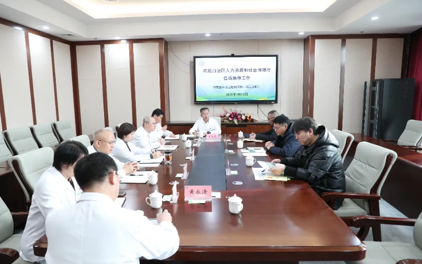 1月13日,内蒙古自治区人力资源和社会保障厅党组成员、社会保险事业服务中心主任赵永刚、自治区人事人才公共服务中心党委书记冯东海一行来牌九玩法研究所