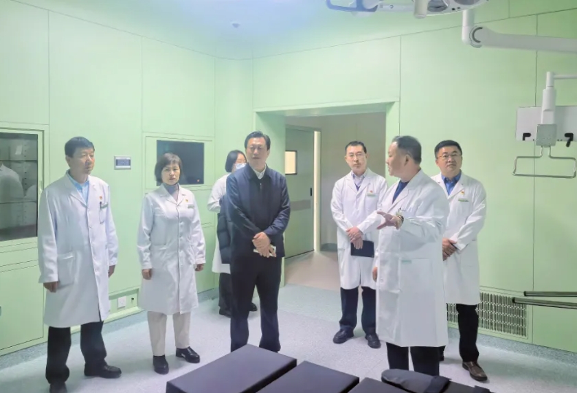 神经外科主任王翔毅详细介绍了手术室当前的建设情况,包括手术室的设计布局、设备安装调试、以及即将开展的手术项目准备情况等。手术室的建设严格遵循国际医疗标准,力求为患者提供最安全、高效的手术治疗环境。隋晓杰副主任一行还实地查看了神经外科和重症ICU病房,病房设施设备及环境。