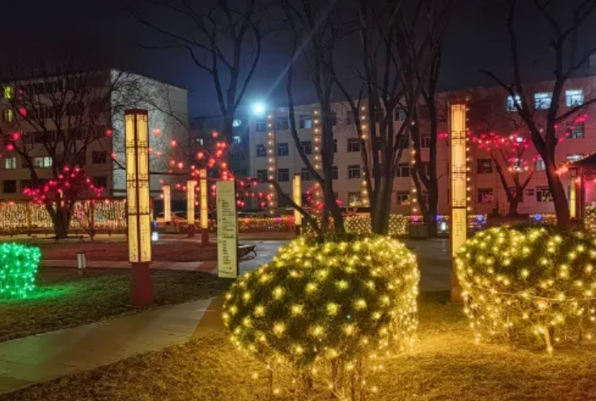 精心策划,对两院区进行了彩灯装饰,整个牌九游戏