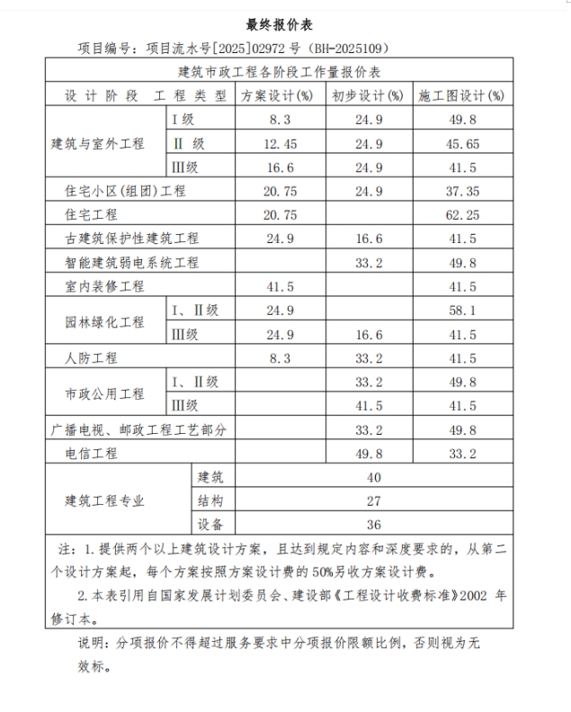 1 | 维修改造工程设计服务 | 1 | 详见响应文件 | 详见报价表附件 |