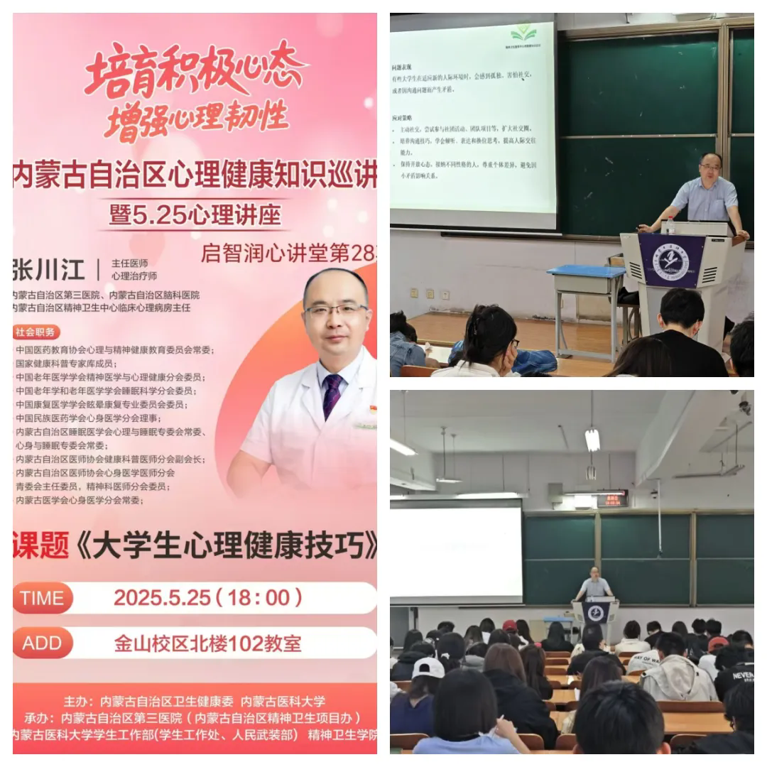 5月25日“大学生心理健康日”,自治区专家巡讲团走进大学校园,为内蒙古医科大学270多名学生带来了一场专业且生动的心理健康知识盛宴。