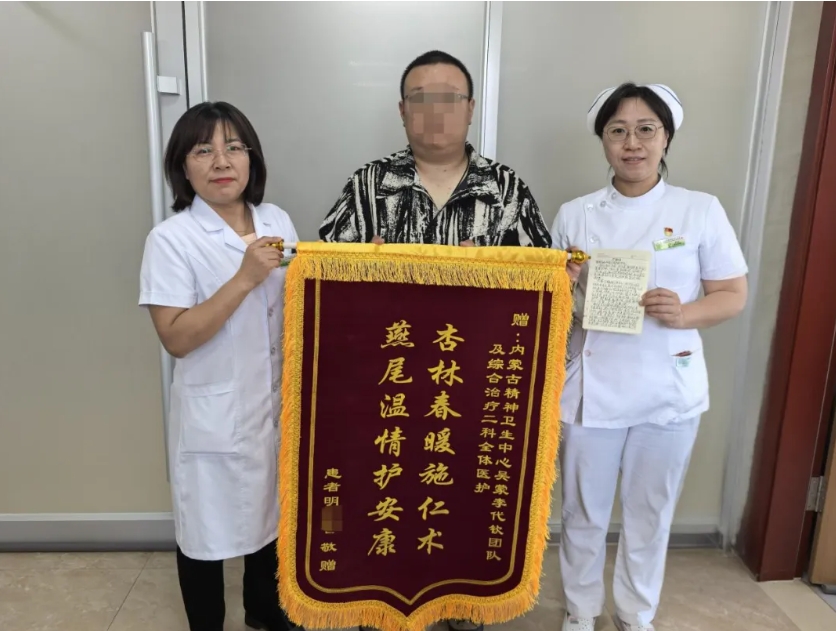 护理团队更是以春风化雨般的关怀,为他筑起温暖港湾。无论是凌晨三点的床头巡视,还是每次服药前细致的三查八对;无论是图文并茂的康复健康宣教,还是在情绪低落时轻声给予的鼓励,她们始终用专业与温情陪伴左右。“在这里,我不仅重获健康,更收获了战胜病魔的决心和信心。”话语中满是感激,“这面锦旗和感谢信,承载着我们全家最真挚的谢意,感谢你们用仁心仁术点亮生命之光!”