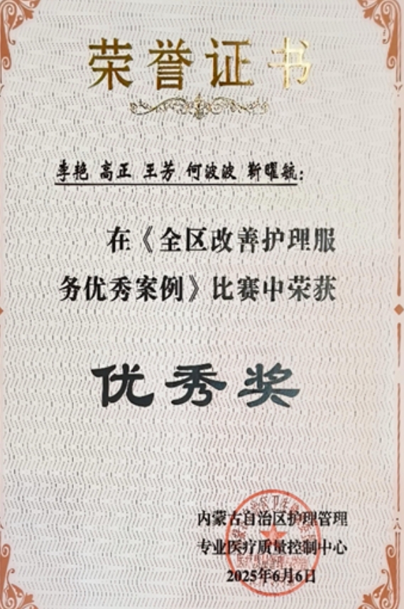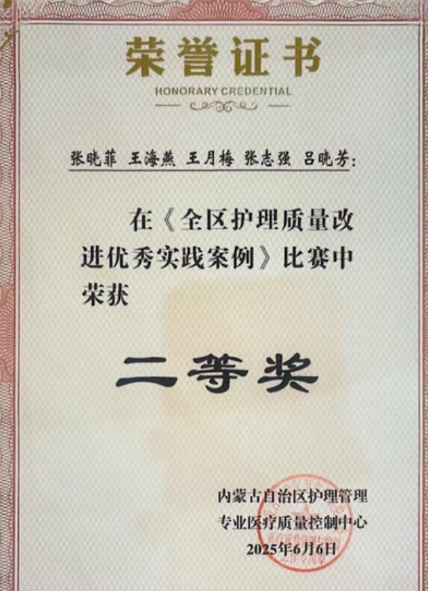 护理团队凭借卓越的专业能力和创新的护理理念脱颖而出,其中护理质量改进优秀实践案例《基于品管圈(QCC)的阻塞性睡眠呼吸暂停(OSA)患者无创正压通气治疗依从性质量改进实践案例》荣获二等奖;改善护理服务优秀案例《提高门诊患者就诊满意率》荣获优秀奖。这一成绩不仅是对牌九玩法研究所