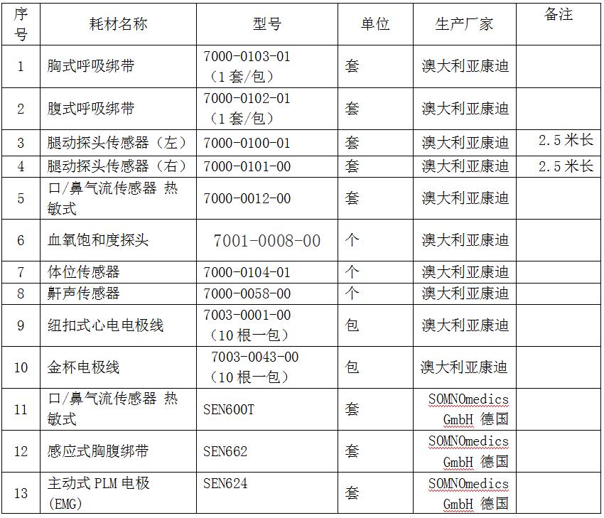 采购项目名称:睡眠监测配件及耗材遴选公告